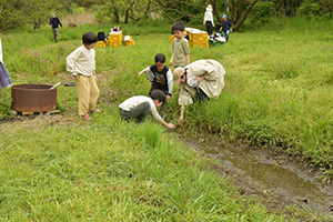 井守(イモリ)は、谷津田に生きる水棲動物の代表であり、生命科学の教育や研究において極めて有用な実験動物です。しかし、生息数は減少し、2006年に準絶滅危惧種として登録されました。このため、如何にして今後研究・教育用イモリを安定的に確保するかが緊急の課題となりました。イモリネットワークは、課題解決に向けてイモリの保護・保全活動を開始するとともに、研究・教育用資源化(バイオリソース化)に向けて野外での大規模養殖の可能性を模索し始めました。